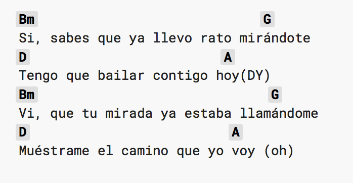 “Despacito” is obviously in a different key–and rather than make you hunt for it, I’ll tell you: it’s in D major (or B minor). Thus, “Despacito’s” Roman Numeral Progression of Bm – G – D – A is… vi – IV – I – V! The exact same!