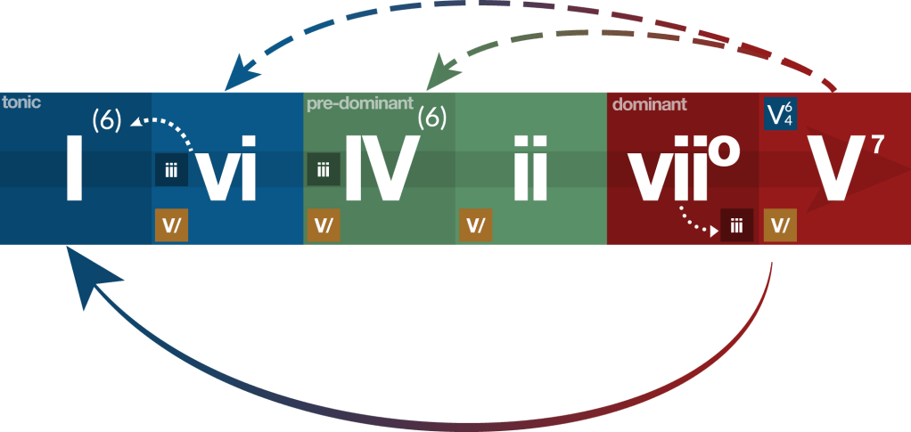 Having gone this far, I know my college theory teachers would hate that I’ve ignored one convention with Roman Numerals: capitalization. Typically, in classical music theory, we use capital Roman Numerals for major chords, and lower case for minor or diminished chords.